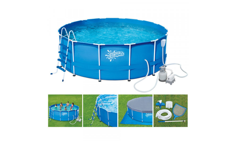 Практичный сборный каркасный бассейн SummerEscapes Р20-1452-S, обладает оригинальной конструкцией, которая позволяет собрать бассейн за 45 минут, без особых физических усилий. Песочный фильтр-насос производительностью 4100л/ч, диаметр шлангов 38мм. Чаша бассейна изготовлена из высококачественного трехслойного ПВХ. Стойки каркаса металлические с покрытием. При сборке бассейна следуйте рекомендациям, указанным в инструкции. Бассейн поставляется полным набором, достаточным для использования, кроме средств для обеззараживания воды. Дополнительно вы можете приобрести аксессуары для каркасного бассейна SummerEscapes Р20-1452-S в разделе "Аксессуары для бассейнов".