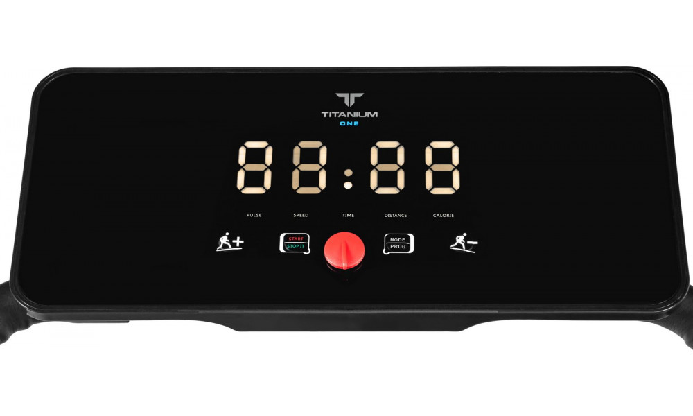 Электрическая беговая дорожка Titanium One T25 С ориентирована на пользователей с начальным и средним уровнем подготовки. Ее основном предназначение – ходьба и бег на небольших скоростях. Скоростной диапазон дорожки варьируется в диапазоне от 1 до 10 км/ч. Размер бегового полотна 100*38 см позволяет комфортно тренироваться при указанных значениях скорости. Заниматься на Titanium One T25 C может пользователь ростом вплоть до 190 см, но есть ограничение по максимальному весу пользователя - 100 кг. Если вес превышает это значение, следует обратить внимание на модели уровнем выше. В дорожке присутствует базовая амортизация в виде 6 плоских эластомеров, снижающая нагрузку на суставы ног и позвоночник. Для создания дополнительной мягкости лучше заниматься на ковре или специально предназначенном для этого полиуретановом коврике для фитнес оборудования. Тренировочный компьютер представлен LED дисплеем. Навигация проста и понятна, а сам переход между программами и функциями идет через приятные в использовании сенсорные клавиши. На экран выводятся все основные параметры тренировки - время, скорость, дистанция, потраченные калории и пульс, сам пульс можно измерить благодаря встроенным в поручни сенсорным датчикам пульса. В программный пакет входят 12 предустановленных программ, направленных на тренировку скоростных качеств, выносливости, укрепления сердечно-сосудистой системы и похудания. Также можно воспользоваться одной из трех программ обратного отсчета (время, дистанция или калории). Titanium One T25 С легко складывается и раскладывается. Ее можно хранить как в горизонтальном, так и вертикальном состоянии. Толщина дорожки в сложенном виде составляет всего 20 см, ее можно хранить как под кроватью, так и вертикально в углу комнаты либо любом удобном для этого месте. В случае вертикального хранения тренажер не требует дополнительной опоры, он может стоять в любом месте с ровной поверхностью. Переместить дорожку просто – достаточно немного наклонить и затем транспортировать на 2-ух транспортировочных роликах. Если поверхность для тренировки не совсем ровная, выровнять положение дорожки помогут резиновые компенсаторы неровностей пола. Преимущества: • Классический форм-фактор • Предназначена для ходьбы и бега трусцой • Максимальная скорость до 10 км/ч • LED дисплей с сенсорными клавишами • Сенсорные датчики пульса • Амортизация на основе 6 плоских эластомеров • Складывается и раскладывается за несколько секунд • Толщина в сложенном виде всего 20 см