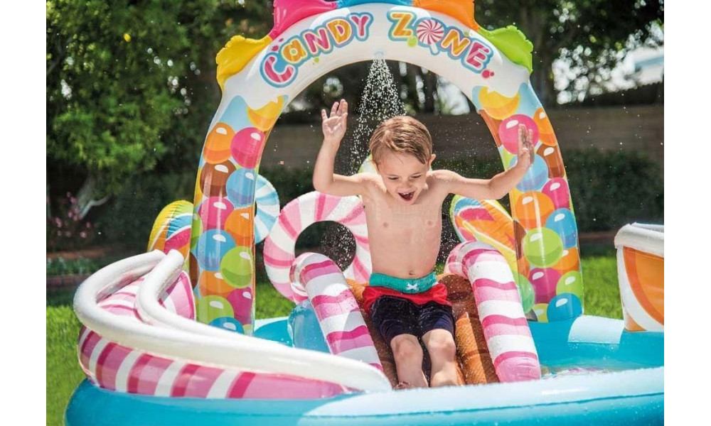 Надувной игровой центр с горкой "Candy Zone" Intex 57149, предназначен для купания детей (под присмотром взрослых). Игровой центр выполнен из качественных материалов и прослужит не один сезон. Яркий, оригинальный дизайн придется по вкусу детям и станет излюбленным местом для игр.